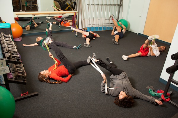 The class focuses on strength, balance, flexibility and cardiovascular conditioning with a strong emphasis on your core. Class sizes are small (typically 5-10 people) consisting of a mix of general public, patients and ex-patients. Instructors are physical therapy staff members. The small class size insures lots of individual attention. The clinical expertise of our instructors gives us a unique ability to cope with any physical limitations caused by old injuries or chronic conditions.